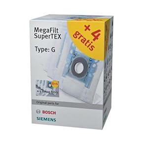 - Inhalt: 12 Staubsaugerbeutel Typ G MegaFilt5 SuperTEX mit Verschluss, 3 Micro-Hygienefilter