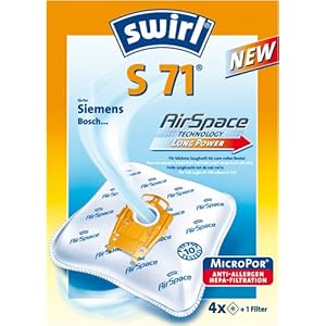 Lieferumfang:4 Stück Staubfilterbeutel Swirl Airspace Micropor S71 + 1